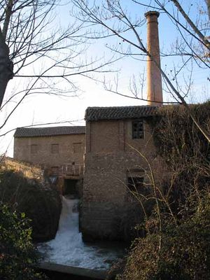 Toma el agua de un azud situado a unos 200 m., llevando el agua hasta una pequeña fábrica de luz ubicada en el complejo, la cual abastecía a la fábrica propiamente dicha.