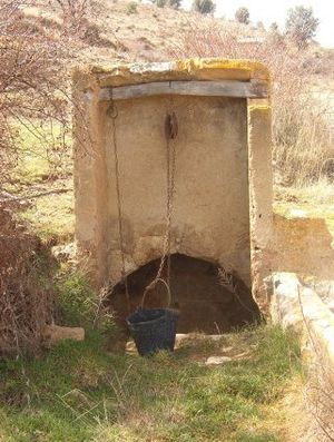 Complejo hídrico en Pozuel del Campo, con una fuente antigua sobre el manantial de donde se extrae el agua, una pila o fuente del siglo XX con abrevadero y un lavadero.