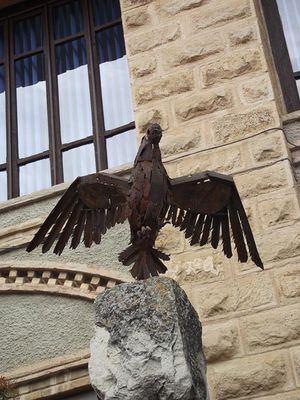 Tras una exitosa excursión a Nueva York, exponiendo particularmente y participando en el Pabellón Vaticano de la Feria Mundial (1964) se retira a su pueblo donde asume la tarea de restauración arquitectónica, consiguiendo una concienciación estética que, bien interpretada por sus paisanos logra un conjunto urbano modélico para la comarca y para Aragón." Desde el pueblo, sedentario y monástico, con el fuego de la fragua y ese especial brío del artista, empezó a llenar de monumentos insólitos lugares de Teruel, de Levante ...:El Tambor, en la Estanca de Alcañiz; el Bombo en Albalate del Arzobispo; el Minero en Utrillas, el Minero y Agricultor, en Andorra; San Roque, en Calamocha; La Vaquilla, en Teruel; la Manta, en Bocairente; San Jorge, en Alcoy; Goya, en Barcelona; etc.