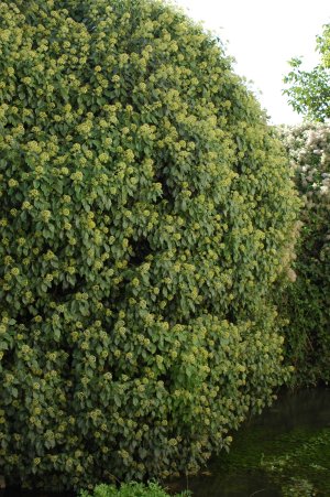 La flor de hiedra produce abundante néctar lo que atrae a numerosas especies de insectos voladores que participarán en su polinización. Es sorprendente observar el gran número y variedad de abejas y avispas que sobrevuelan estos días cualquier hiedra durante el centro del día. Están tan concentradas en tomar el néctar que no reparan en nuestra presencia. No hay miedo a picaduras...