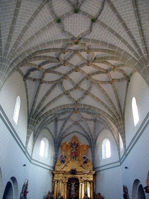Consta de una nave única de gran altura cubierta con bóvedas de crucería estrellada, con capillas laterales entre los contrafuertes comunicadas entre sí, y cabecera poligonal con una sacristía adosada en su lado norte. Además cuenta con un coro alto a los pies.