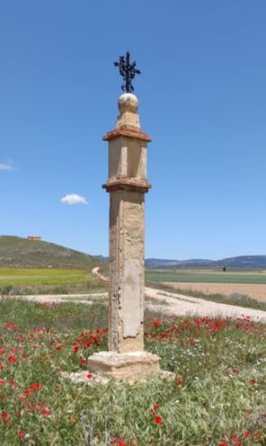 Se levanta en Las Cuerlas, en la bifurcación de los caminos a Daroca, y Jaraba teniendo como fondo la ermita de San Pedro, es totalmente del estilo que podemos ver en los peirones turolenses cercanos a esta zona, más trabajados en su línea arquitectónica. Éste tiene cuatro cuerpos bien diferenciados: amplia grada cuadrada de dos escalones; basa similar a un escalón más pequeño; tronco que más parece un fuste alargado y con las arista decoradas con hendidura vertical en la cara frontal; y edículo de ladrillo, entre dos cornisas del mismo material, con una capillita de vano rectangular sin imagen y, por último, centremos el interés en el cimacio que, en este caso, resulta ser un tronco de pirámide con bola -todo ello de piedra- que tiene esculpida una cara de mujer, ¿la Virgen?. Remata el conjunto una artística cruz de hierro. Sin duda un gran ejemplar de esta subestimada arquitectura rural, su data podría ser de los siglos XVIII-XIX.
