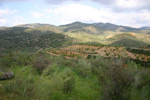 El paisaje vegetal está formado por bosques de encina y carrasca, combinados con pinos de repoblación. En algunos sectores más favorecidos o a mayor altura aparecen quejigales, melojo y rebollo, muy mermados por las repoblaciones de pino carrasco. Junto a las formaciones arbóreas encontramos un los típicos matorrales mediterráneos formado por brezales con aliaga, tomillares mixtos, lastonares, brecina, etc.