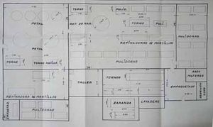 A mediados del siglo XX había únicamente dos fábricas en España y una de ellas se encontraba en Burbáguena. La instalación industrial de Burbáguena fue construida en 1933, especializándose desde sus orígenes en la purpurina dorada y plateada o blanca.