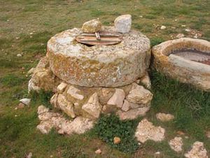 - También se puede construir de una sola pieza con sillares cilíndricos que presentan un orificio central circular, desde donde se tiene acceso al agua. Esta última tipología es muy frecuente en los pozos rústicos del campo de Bello, destinados sobre todo al abastecimiento de los rebaños de ovejas.