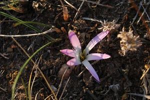La planta tiene un bulbo del cual nace una flor que asoma sobre el suelo al final del verano. Después le nacen una finas y estrechas hojas que fabrican los nutrientes para el desarrollo del fruto, que nace meses después.