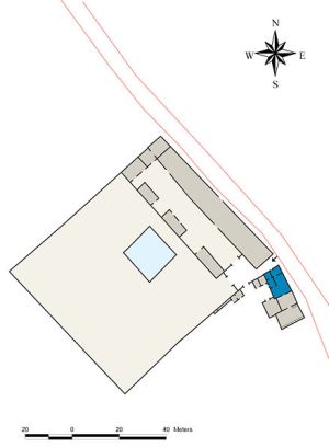Croquis de planta. En azul claro la vivienda principal. En azul oscuro la casa del pastor